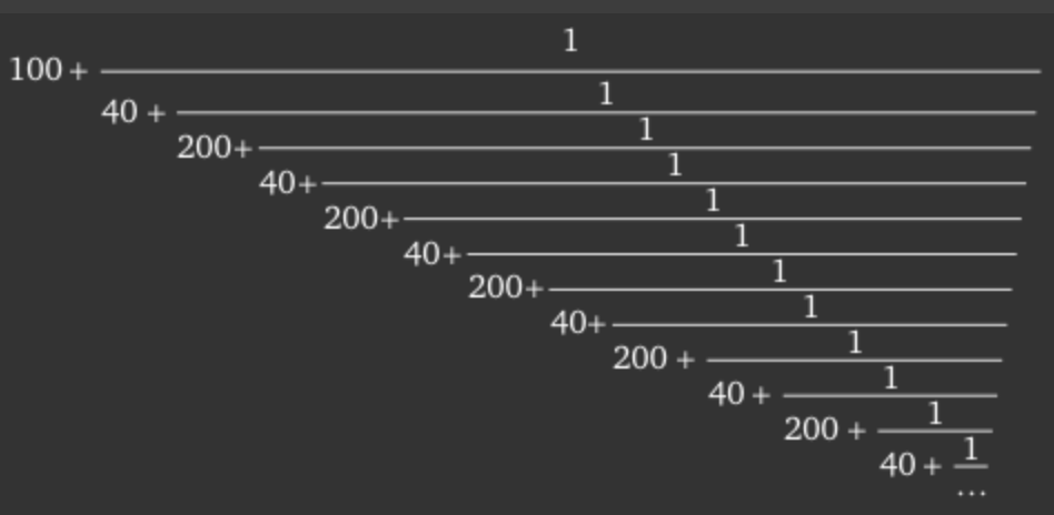 - 高速な真面目な割り算が辛いので、途中での割り算や剰余や約分の計算をできるだけ後回しにし、最終的な約分や割り算や10進表示のための変換をcompile時にやってない、というだいぶズルをした!!!